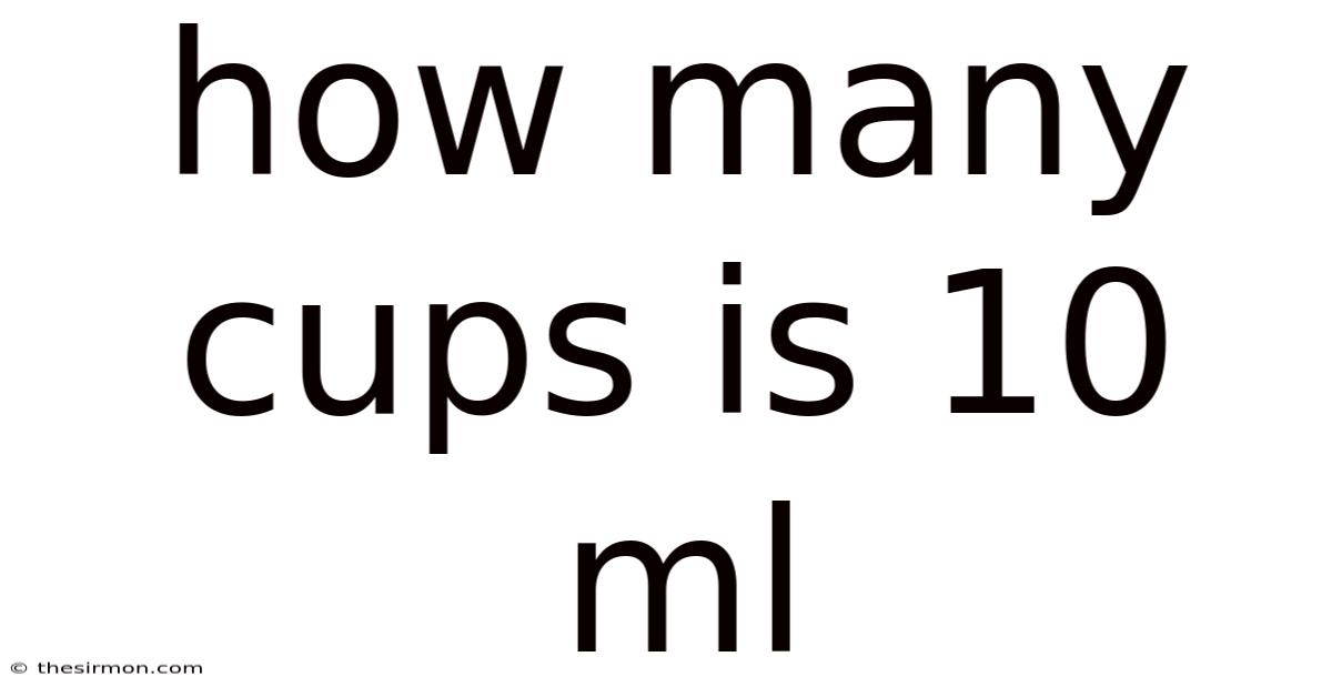- How can I convert 10 ml to cups mentally? Remember that 10 ml is roughly 1/24 of a US cup. For quick estimation, divide by 240, a commonly rounded value used in home kitchens.