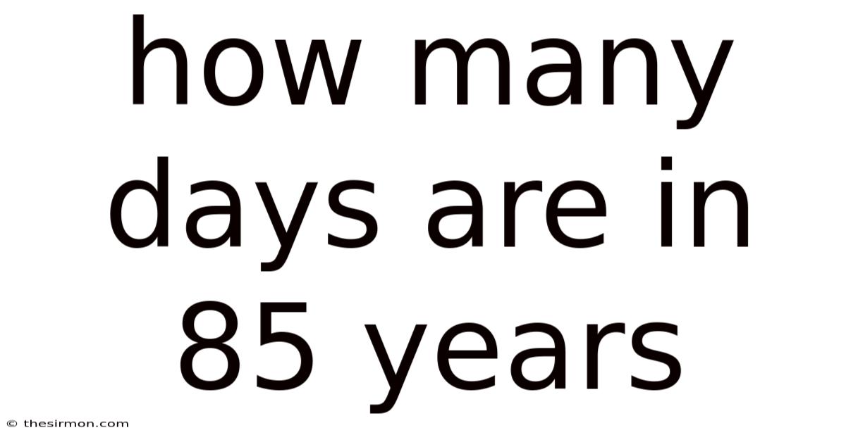 The answer to how many days are in 85 years hinges on the leap‑year pattern embedded in the Gregorian calendar. Most 85‑year intervals contain 21 leap years, giving 31 046 days. If the interval includes a non‑leap centurial year (such as 1900), there are 20 leap years and the total drops to 31 045 days Practical, not theoretical..