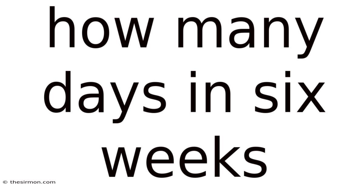 A week consists of seven days, so calculating the number of days in six weeks is straightforward. On top of that, multiplying seven days by six weeks gives us a total of forty-two days. This basic math is useful in many everyday situations, from planning events to scheduling work shifts or school terms It's one of those things that adds up..