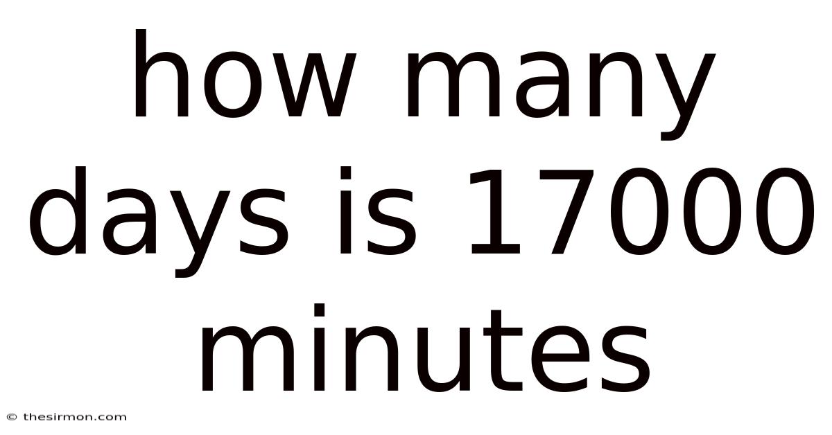 When asked, “How many days is 17,000 minutes?Still, this question often arises in contexts where precise time management is critical—whether for project planning, fitness tracking, or even understanding durations in scientific research. ” the answer might seem straightforward at first glance. But the conversion from minutes to days is a fundamental mathematical exercise, but its practical implications can be surprisingly impactful. Understanding this conversion not only sharpens numerical skills but also equips individuals to better manage time-sensitive tasks in daily life Small thing, real impact..