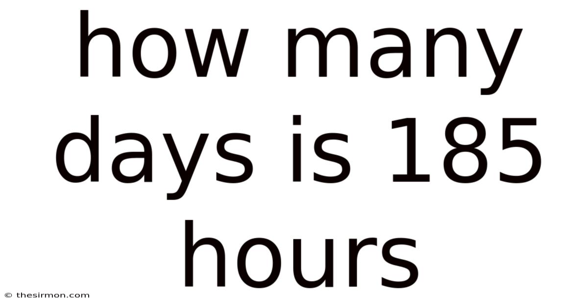 185 hours equals 7 days and 13 hours. On the flip side, this conversion is fundamental for understanding time measurement in practical terms. Whether you're planning a project, calculating work hours, or simply curious about time, knowing how to translate hours into days is essential. Let's explore this conversion in detail.