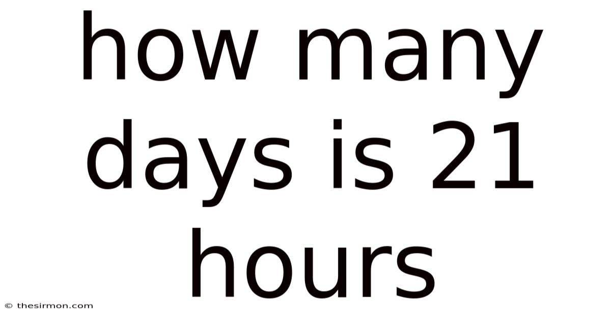 Understanding time conversion is an essential skill in our daily lives, whether we're planning schedules, calculating work hours, or simply trying to make sense of different time units. This conversion is particularly useful in various contexts, from project planning to scientific calculations, and even in personal time management. Worth adding: when we ask "how many days is 21 hours," we're looking to convert a specific duration from hours into days, which requires understanding the relationship between these two units of time. In this practical guide, we'll explore the answer to this question in detail, along with practical applications and additional insights about time measurement.