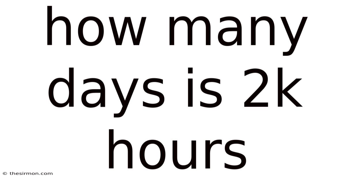 When people ask, “How many days is 2k hours?Even so, the answer isn’t always as simple as it seems. Practically speaking, ” they are often trying to grasp the scale of a specific time frame. On the flip side, whether it’s for planning a project, tracking work hours, or simply satisfying curiosity, converting 2k hours into days is a straightforward calculation. This article will break down the math, explain the context, and address common questions to ensure you fully understand what 2k hours truly means in terms of days Not complicated — just consistent..