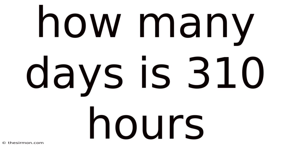 Introduction Understanding time conversions is a fundamental skill, useful for planning projects, scheduling, travel, or simply satisfying curiosity. When faced with the question "how many days is 310 hours?", the answer lies in a simple mathematical relationship: one day consists of 24 hours. So, converting hours to days requires dividing the total hours by 24. This basic principle forms the core of our exploration into the duration represented by 310 hours. The result, approximately 12.916 days, translates practically to 12 days and 22 hours. This article will dig into the calculation process, provide context, answer common questions, and solidify your grasp of this essential time conversion.