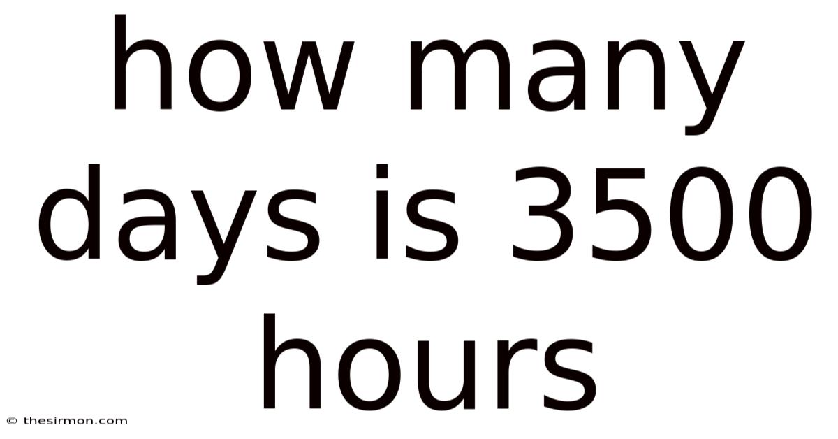 To break this down further, 3500 hours is equivalent to 145 full days plus an additional 19 hours and 59 minutes. This can be calculated by first determining the whole number of days (3500 ÷ 24 = 145.83), then multiplying the decimal portion by 24 to find the remaining hours (0.83 x 24 = 19.92 hours, which rounds to 19 hours and 59 minutes).