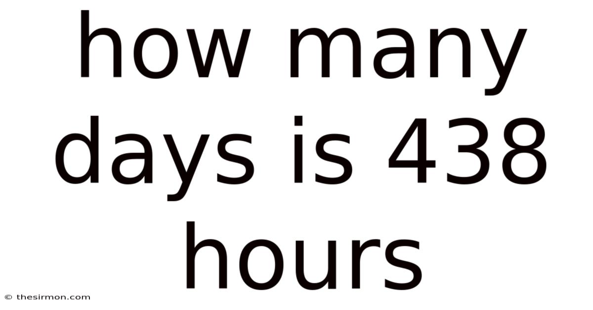The bottom line: the ability to convert hours to days, as demonstrated by the 438-hour example, is a fundamental skill for navigating our time-driven world. By mastering these seemingly simple calculations, we open up a powerful tool for efficiency, reduce the risk of burnout from unrealistic scheduling, and cultivate a proactive approach to our most valuable resource: time. It empowers individuals and organizations to break down complex tasks, allocate resources wisely, set achievable milestones, and maintain a realistic pace. This foundational understanding is not merely academic; it is an essential practice for achieving clarity, control, and sustained success in all aspects of life Nothing fancy..
