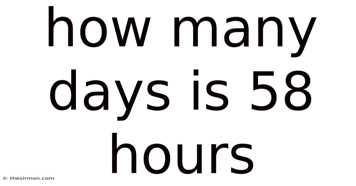 The question “How many days is 58 hours?Because of that, ” often comes up in scenarios where time allocation is crucial. Here's one way to look at it: in a work environment, an employee might need to calculate how many days they need to dedicate to a task that requires 58 hours of effort It's one of those things that adds up..
