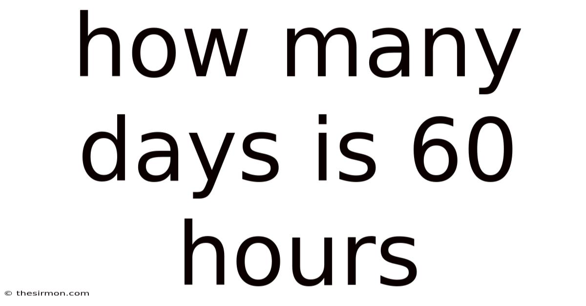 Understanding time conversions is essential for effective planning and scheduling in our daily lives. One common question that arises is "how many days is 60 hours?" This conversion might seem straightforward, but having a clear understanding of how hours translate into days can be incredibly useful for various aspects of life, from project management to travel planning. In this thorough look, we'll explore the answer to this question and provide valuable insights into time measurement and conversion The details matter here. Took long enough..