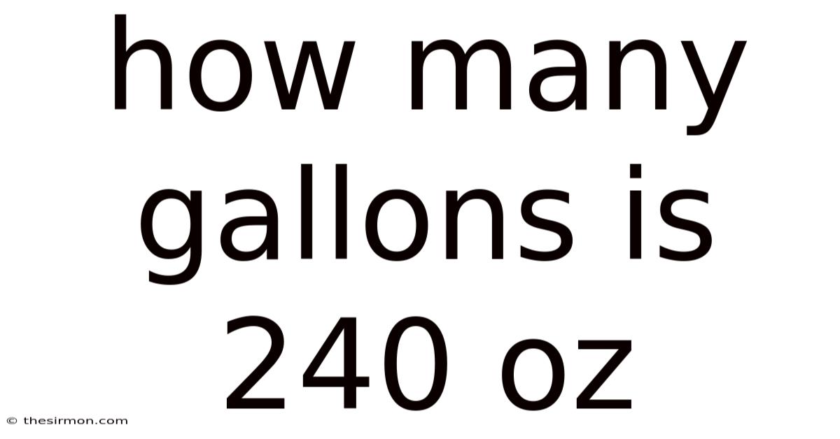 240 ounces equals 1.875 U.5 Imperial gallons (or 1 gallon + 1/2 gallon). S. Practically speaking, gallons** (or 1 gallon + 7/8 gallon) and **1. The system you use determines the answer, and now you know both—and how to measure each without breaking a sweat.