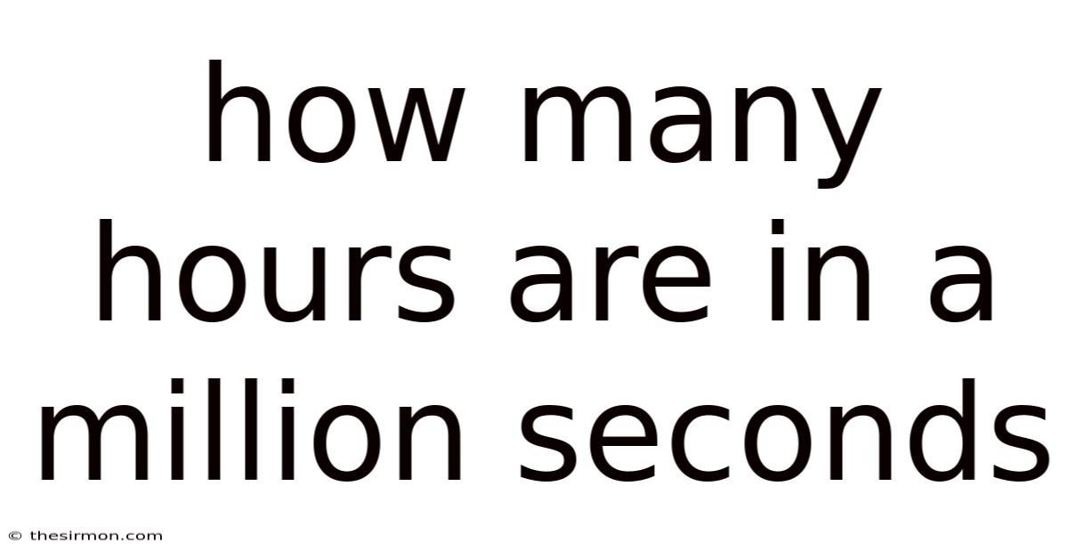 A single second is the smallest standard unit of time in the International System of Units (SI). When you multiply this basic unit by a large number, such as one million, the result can be surprisingly intuitive once you break it down. Converting a million seconds into hours involves a simple chain of divisions: seconds → minutes → hours. In this article, we’ll walk through the step‑by‑step calculation, explore the math behind it, and look at real‑world contexts where knowing this conversion is useful Which is the point..