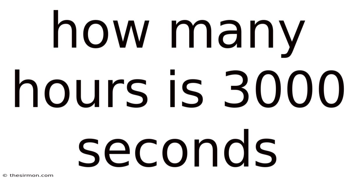 Have you ever wondered how long 3000 seconds is in hours? Because of that, while 3000 seconds might seem like a random number, breaking it down into hours, minutes, and seconds reveals practical insights. That's why in this article, we’ll explore the math behind this conversion, real-world applications, and common mistakes to avoid. Whether you’re timing a workout, calculating a project deadline, or just curious about time conversions, understanding how to convert seconds to hours can be surprisingly useful. Let’s dive in!