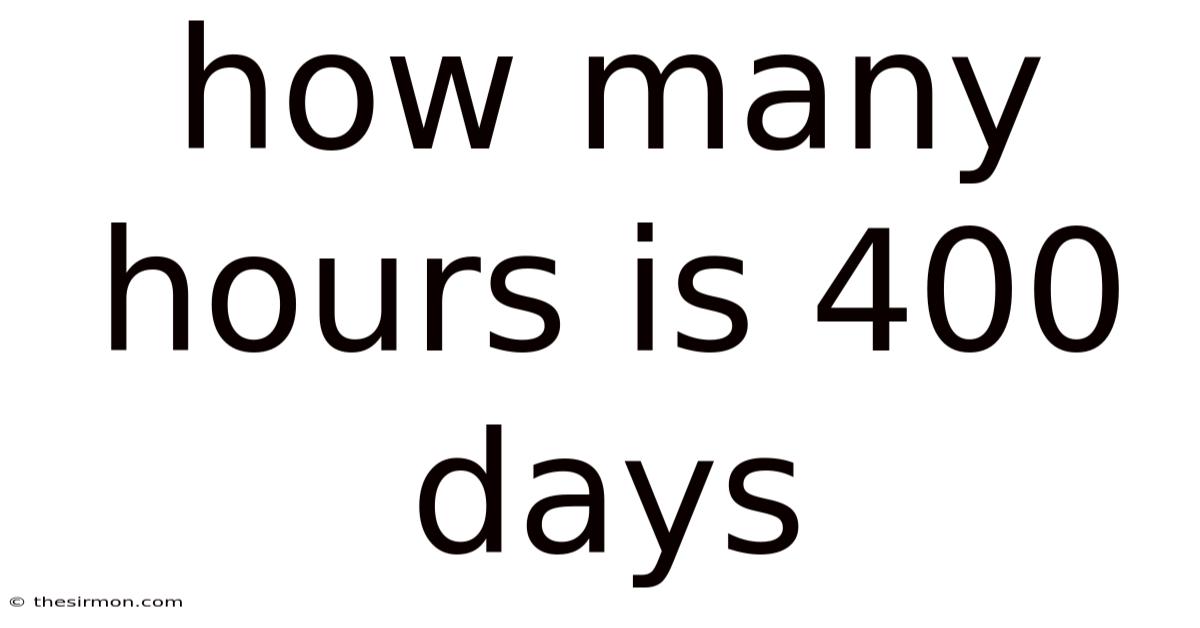 When you ask how many hours is 400 days, you are essentially asking for a conversion from the civil day—the 24‑hour cycle most of the world uses—to the smaller unit of an hour. The answer is not a mystery; it is a simple multiplication of the number of days by the number of hours contained in each day. On the flip side, understanding why 400 days translate to 9,600 hours requires a brief look at the definitions of these units, the arithmetic involved, and the context in which such conversions are useful. By the end of this guide, you will not only know the exact hour count but also feel confident applying the same method to any other day‑to‑hour conversion you might encounter That's the whole idea..
