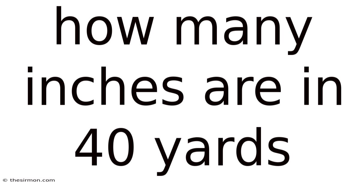 To determine how manyinches are contained within 40 yards, we must rely on the fundamental conversion factor between these two units of length. This calculation is straightforward once the relationship between yards and inches is understood, but it's essential to grasp the underlying principles for accurate application in various contexts, from everyday measurements to specialized fields like construction, sports, or tailoring Most people skip this — try not to..