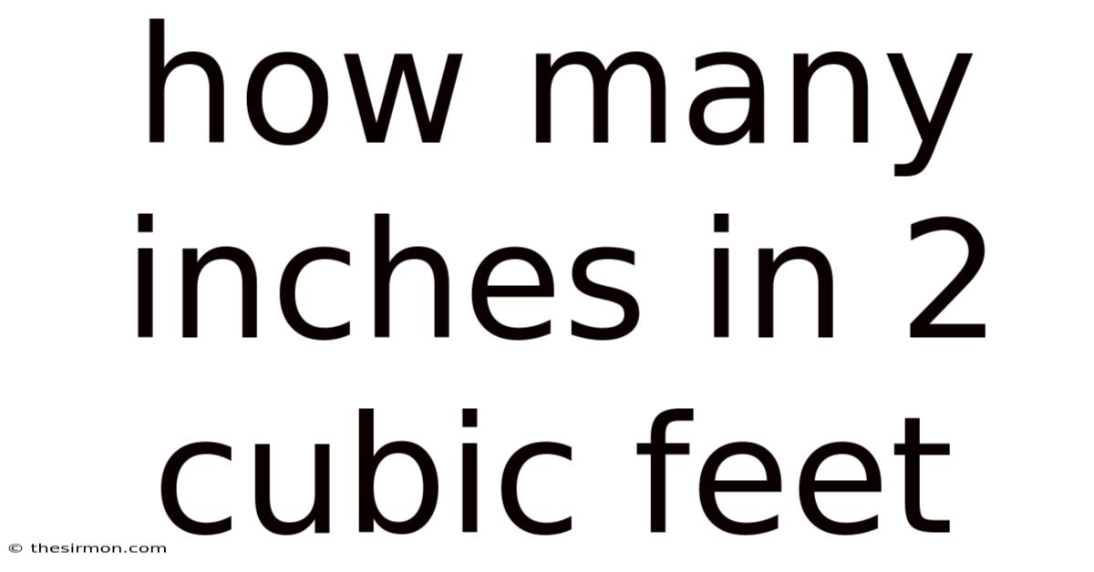 The question "how many inches in 2 cubic feet" reveals a fundamental and very common point of confusion in measurement. Even so, it stems from mixing two entirely different types of units: linear inches, which measure length along a single dimension, and cubic feet, which measure volume across three dimensions (length, width, and height). You cannot convert a volume (cubic feet) directly into a linear measurement (inches) any more than you can convert "hours" into "miles." They measure fundamentally different things. The meaningful and correct question is: how many cubic inches are in 2 cubic feet? This conversion is essential for tasks in shipping, construction, gardening, and DIY projects where you might encounter measurements in different unit systems. This article will definitively answer that question, explain the mathematical relationship between these units, and provide the practical knowledge to perform this conversion confidently and avoid costly errors.