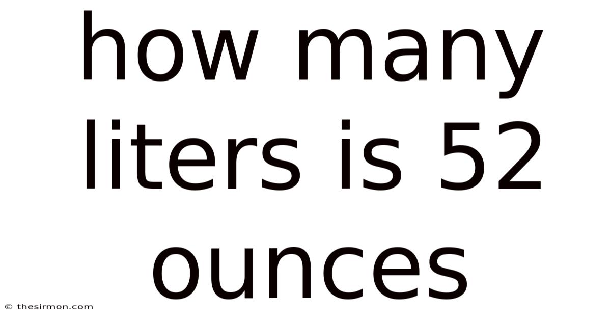 For 52 ounces, the calculation is as follows: 52 ounces x 0.0295735 liters/ounce = 1.53743 liters