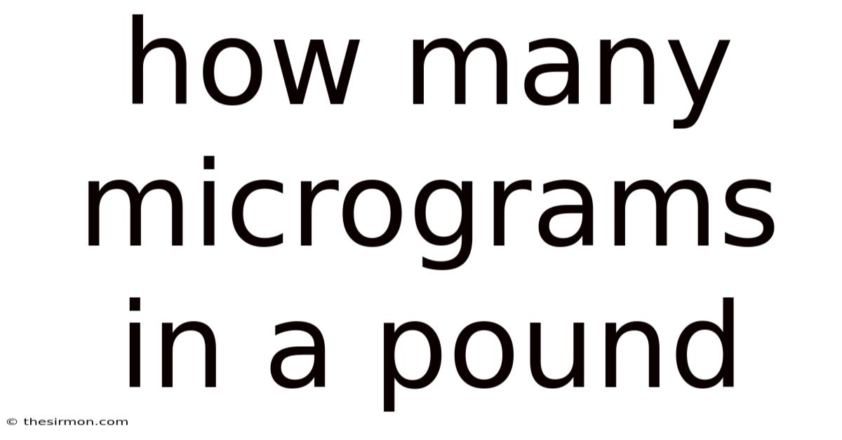 When you hear the word “pound,” you probably picture a hefty weight—perhaps a bag of flour, a newborn baby, or a stack of books. Understanding how many micrograms are in a pound is essential for scientists, students, and anyone working with extremely small quantities. But what if you need to express that same mass in micrograms, the microscopic unit used in chemistry, biology, and engineering? This article breaks down the conversion step by step, explains the science behind the units, and provides practical examples so you can confidently switch between pounds and micrograms whenever the need arises That's the whole idea..