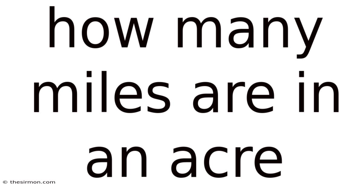 The question "how many miles are in an acre?Asking how many miles are in an acre is like asking how many gallons are in a foot—the units describe entirely different physical properties. Because of that, this is not a trick question or a simple arithmetic problem with a hidden number; it stems from a core confusion between two fundamentally different types of measurements. An acre is a unit of area, a two-dimensional measurement of surface space. The immediate and critical answer is that you cannot convert acres directly into miles. " is one of the most frequently asked yet fundamentally misunderstood queries in land measurement. Still, a mile is a unit of length or distance, a one-dimensional measurement of a straight line. The meaningful conversion is not between an acre and a mile, but between an acre and a square mile. This distinction is the key to understanding land area in the United States, the United Kingdom, and other countries that still use these imperial units.