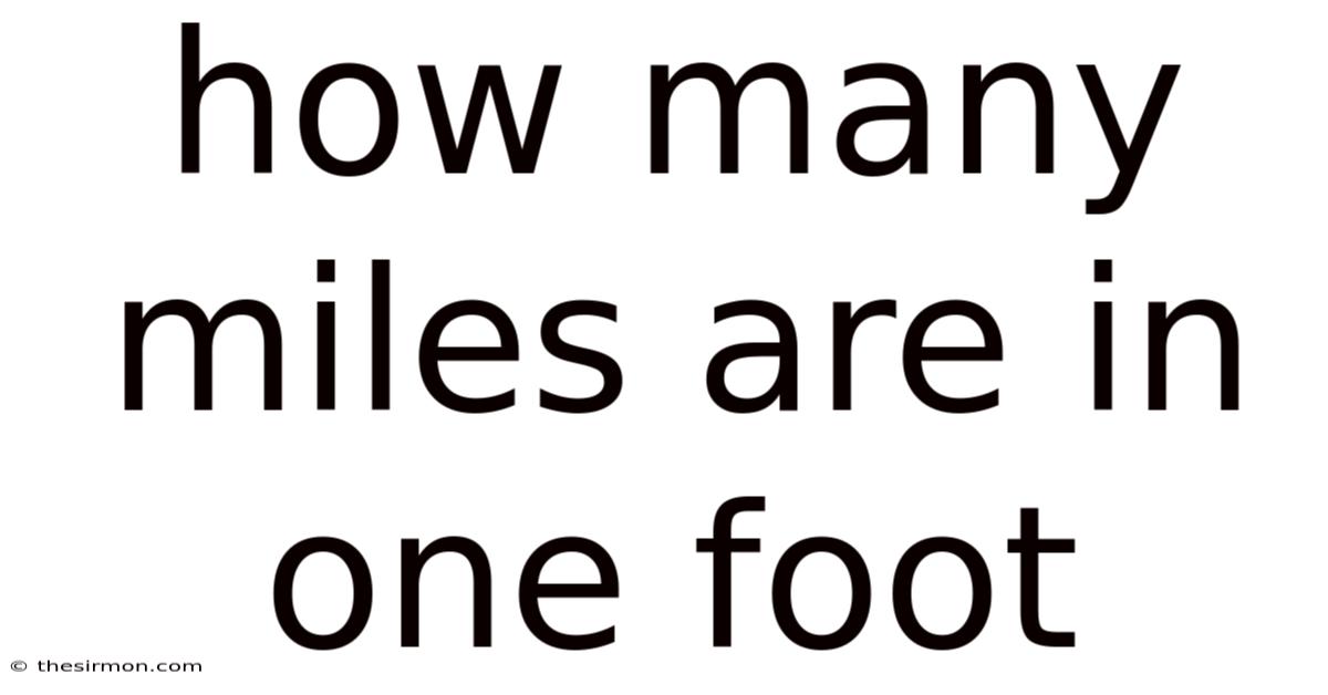 To keep it short, the precise answer to "how many miles are in one foot" is approximately 0.This conversion, derived from the fundamental definition that 1 mile equals 5,280 feet, is a cornerstone of imperial and US customary measurement systems. Also, 000189 miles. Understanding this relationship, along with the historical context and practical applications, empowers you to work through distances accurately, whether you're solving a math problem, planning a project, or simply satisfying your curiosity about the world's measurement standards. This knowledge bridges the gap between everyday measurements and larger scales, providing a clear perspective on the relationship between these two fundamental units Less friction, more output..