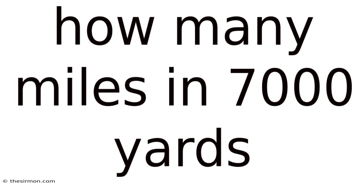 Understanding how many miles are in 7,000 yards equips you with a useful conversion skill that applies across sports, travel, education, and everyday life. 98 miles**—just shy of four miles. Practically speaking, whether you’re charting a running route, measuring a piece of land, or simply satisfying curiosity, the method outlined here ensures accuracy and confidence. By dividing the yard value by the fixed conversion factor of 1,760 yards per mile, you find that 7,000 yards equals **approximately 3.Remember the core ratio, practice a few mental shortcuts, and you’ll be able to translate yards to miles (and vice versa) with ease, turning a seemingly obscure number into a clear, actionable distance.
