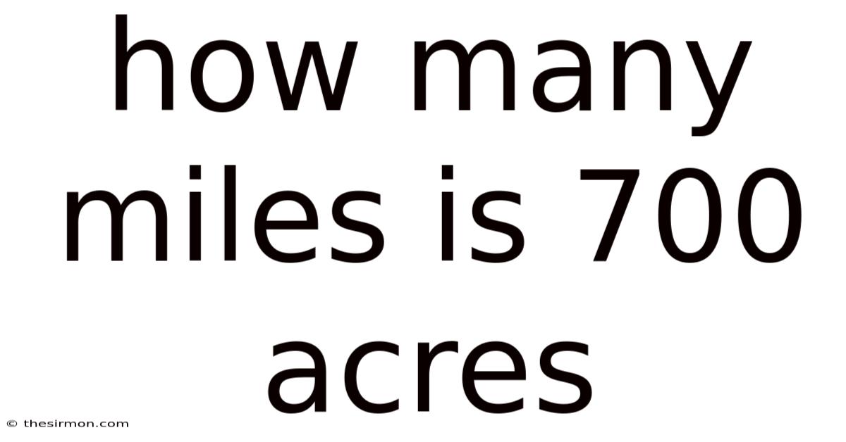 Understanding that 700 acres equals roughly 1.On top of that, 09 square miles bridges the gap between two common land‑measurement systems. Whether you’re a landowner, a student, or a curious reader, visualizing the acreage as a square just over a mile on each side, or as a space that could contain more than 500 football fields, turns an abstract number into a tangible picture The details matter here..