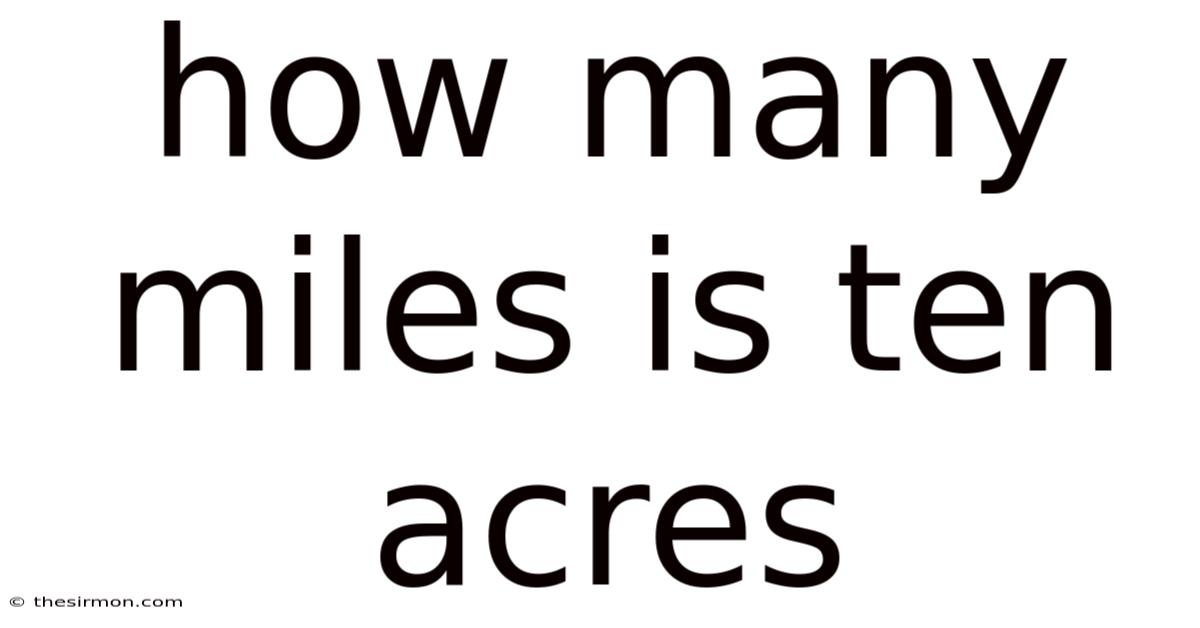 When people talk about buying or selling land, the conversation often revolves around acres, but many of us find it hard to visualise what that actually means on the ground. If you’re wondering, “how many miles is ten acres?” you’re not alone. Consider this: converting acres into miles (or more commonly into square miles or linear miles) can help you grasp the scale of a property, compare it to familiar landmarks, or plan a project that requires a certain amount of space. This article breaks down the math, offers real‑world comparisons, and explains why understanding the relationship between acres and miles matters for homeowners, developers, and environmental enthusiasts alike The details matter here..