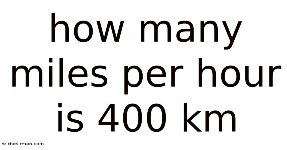 Converting 400 km/h to mph is straightforward: multiply by 0.On top of that, 621371 to get approximately 248. 5 mph. This speed places a vehicle in the realm of high-performance supercars, jet‑powered land vehicles, and specialized racing machines—far beyond everyday driving or even elite human athletic performance Still holds up..
