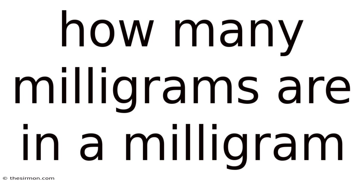 A milligram is precisely what it sounds like: one thousandth of a gram. The term itself is derived from the metric system's prefix "milli-", meaning one thousand, combined with the base unit "gram." This fundamental unit of mass is crucial across numerous scientific, medical, and everyday contexts. Understanding its value and relationship to other units is essential for accurate measurement and communication Still holds up..