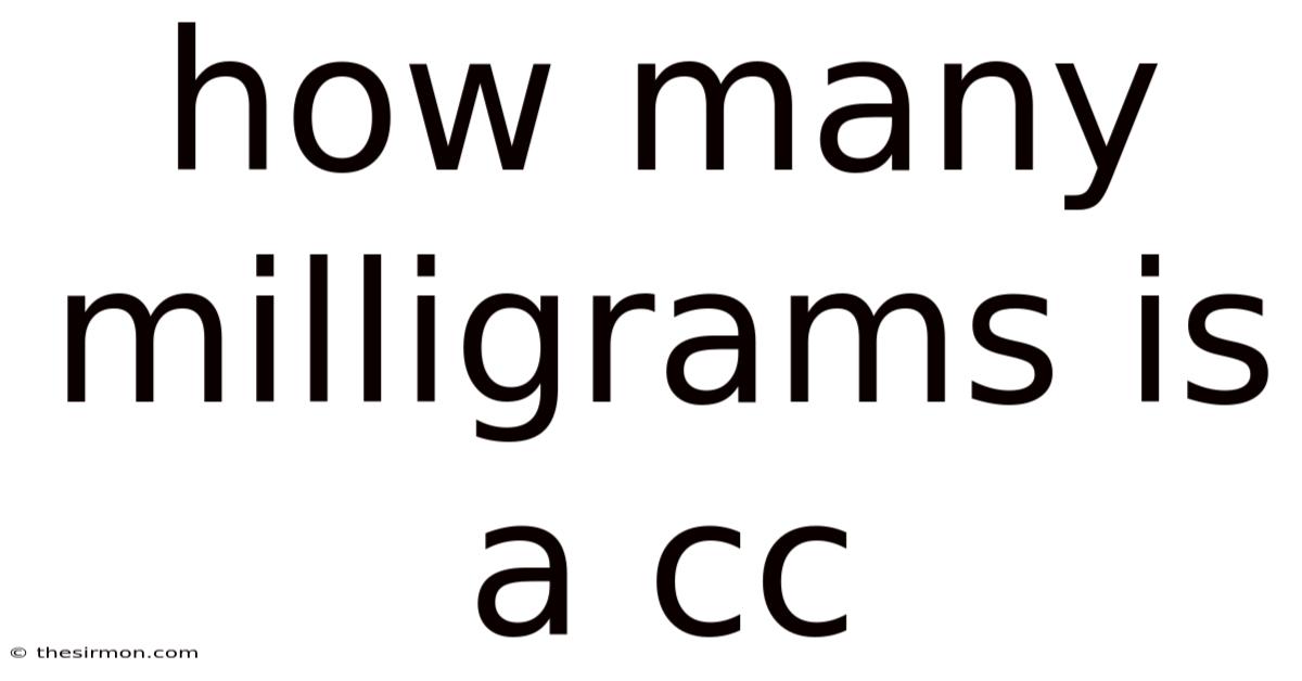 The question of how many milligrams (mg) are in a cubic centimeter (cc) is a common one, especially in fields like medicine, chemistry, and cooking. On the flip side, the answer isn’t as straightforward as it might seem at first glance. Here's the thing — while cc and mg are both units of measurement, they represent different physical properties: cc measures volume, and mg measures mass. To convert between them, you need to understand the relationship between density, mass, and volume. This article will explore the science behind this conversion, provide practical examples, and clarify common misconceptions Simple as that..