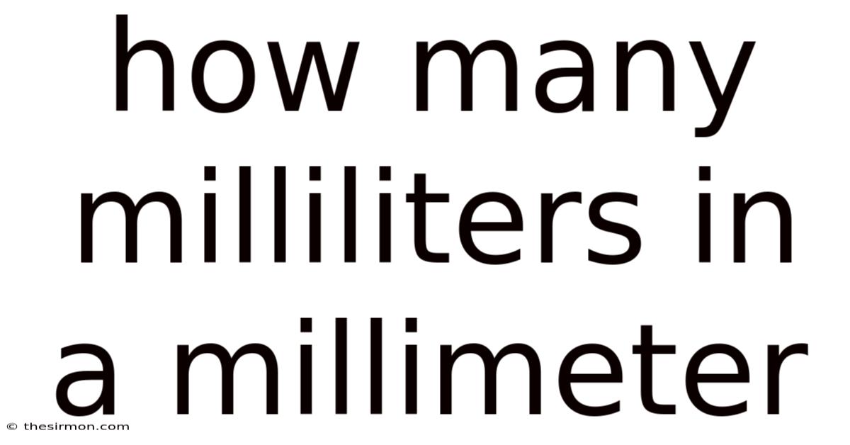 The question "how many milliliters in a millimeter" is one that often confuses people who are trying to convert between different types of measurements. But the short answer is that milliliters and millimeters cannot be directly converted because they measure fundamentally different things. Milliliters measure volume, while millimeters measure length. Still, understanding the relationship between these two units can help you make practical calculations when you have additional information about the shape or dimensions of an object Most people skip this — try not to. Surprisingly effective..