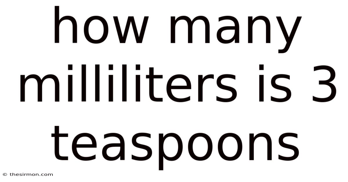 Understanding how many milliliters is 3 teaspoons is a practical skill that benefits cooks, bakers, students, and anyone working with metric and imperial measurements. Practically speaking, teaspoons are common in recipes and medication instructions, while milliliters are the standard unit for volume in science, medicine, and most of the world’s kitchens. Converting between these units ensures accuracy, prevents waste, and supports safety, especially in contexts where precise dosing matters. This guide explains the conversion, the reasoning behind it, and how to apply it in real-world situations.