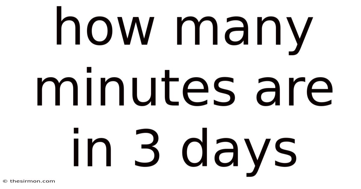 On top of that, this information is not just theoretical. By breaking down the total minutes in three days, you gain a clearer picture of your commitments and can adjust your plans accordingly. Plus, whether you’re a student preparing for exams or a professional juggling multiple responsibilities, understanding the time required for tasks is essential. So naturally, it has real-world relevance. This is especially useful in today’s fast-paced world where time is a precious resource And it works..