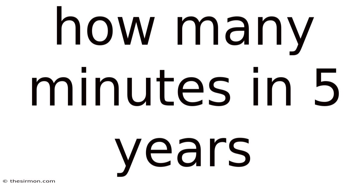 Using the Julian Year method, the calculation becomes: $5 \text{ years} \times 365.25 \text{ days} \times 24 \text{ hours} \times 60 \text{ minutes} = \mathbf{2,629,800 \text{ minutes}}$.