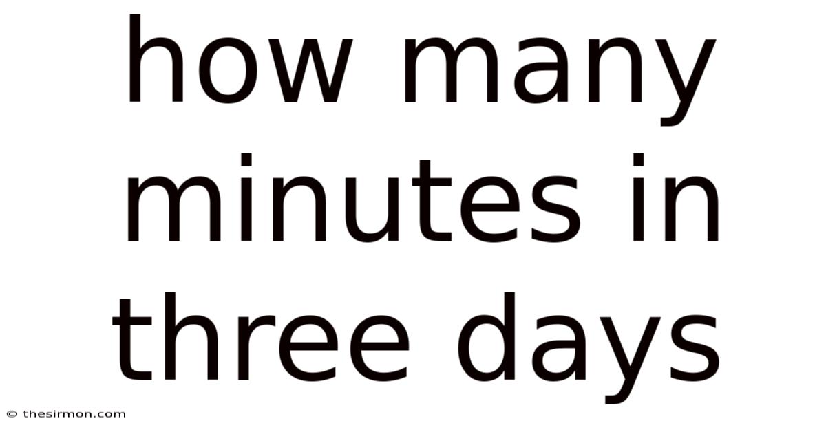 So, there are exactly 4,320 minutes in three days. This figure remains constant across all standard civil calendars because the modern day is legally and scientifically fixed at 24 hours. When you visualize 4,320 individual minutes, the abstract concept of “three days” shifts from a vague timeframe into a tangible resource you can allocate, track, and optimize with confidence But it adds up..