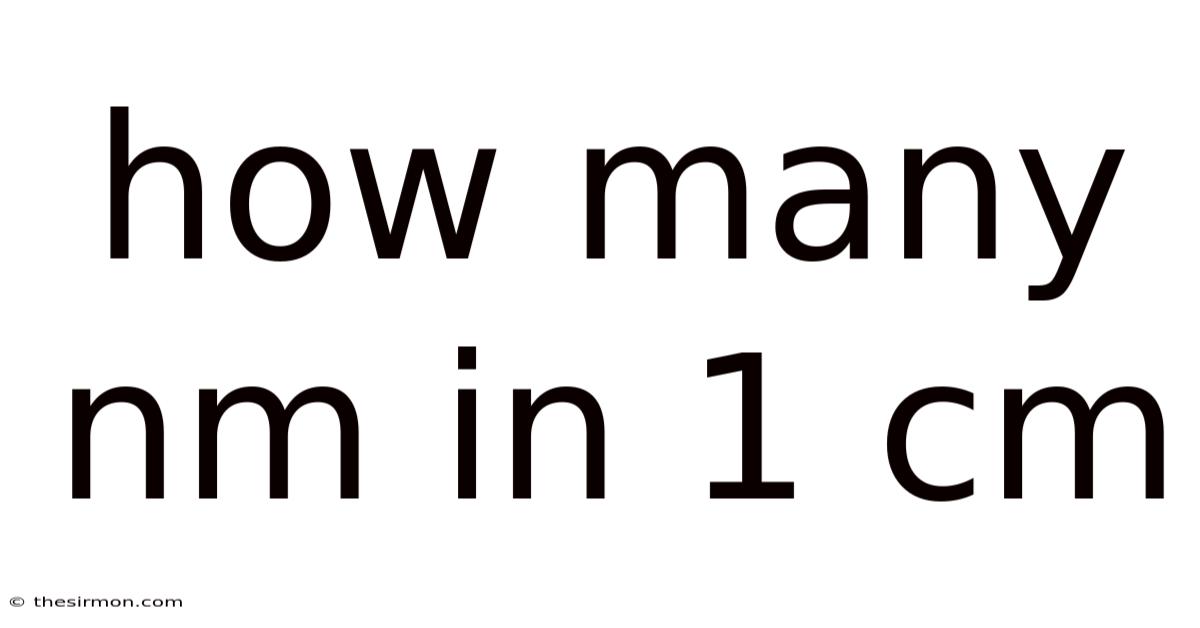 The question at hand is simple yet significant: *how many nanometers are in one centimeter?Alternatively, the centimeter, or cm, is a larger unit, representing one hundred thousandths of a meter. * To answer this, we need to break down the fundamental units of measurement and how they interact. Consider this: the nanometer, or nm, is a unit of length that measures one billionth of a meter. On top of that, by comparing these two, we can see how they relate to each other. This conversion is not just a mathematical exercise; it plays a vital role in fields ranging from biology to engineering, where precision matters Most people skip this — try not to..