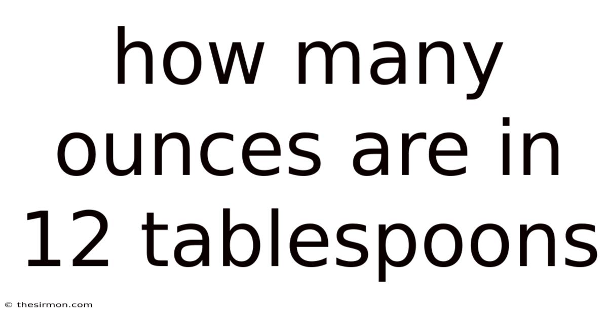 - Calculate the result: For 12 tablespoons of a liquid, 12 × 0.5 = 6 fluid ounces.
