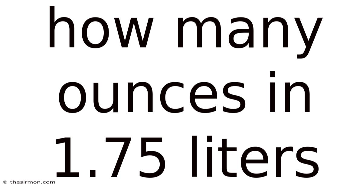 If you’reasking how many ounces in 1.75 liters, the quick answer is that 1.75 liters equals approximately 59.In real terms, 2 fluid ounces. And this conversion is essential for anyone working with recipes, scientific experiments, or everyday measurements that bridge the metric and imperial systems. In this article we’ll break down the math, explore the history behind the units, and provide practical examples so you can confidently convert any volume between liters and ounces That's the part that actually makes a difference. Worth knowing..