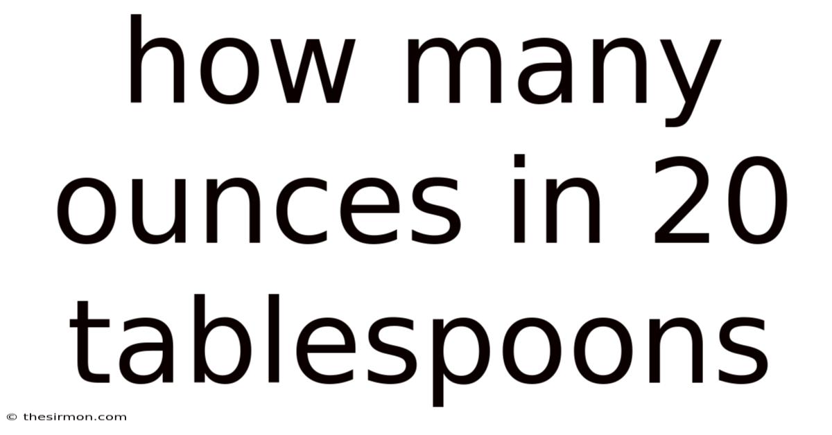 Understanding kitchen conversions is a fundamental skill that bridges the gap between a recipe's instructions and a successful culinary creation. A common and crucial question for bakers and cooks alike is: **how many ounces are in 20 tablespoons?Day to day, ** The direct answer, within the standard US customary system used in most American recipes, is 10 fluid ounces. Because of that, this conversion is not just a number; it's a key to precision in the kitchen, ensuring your dishes turn out as intended every time. Mastering this relationship between tablespoons and ounces eliminates guesswork, prevents recipe failures, and builds confidence in your cooking and baking abilities Less friction, more output..