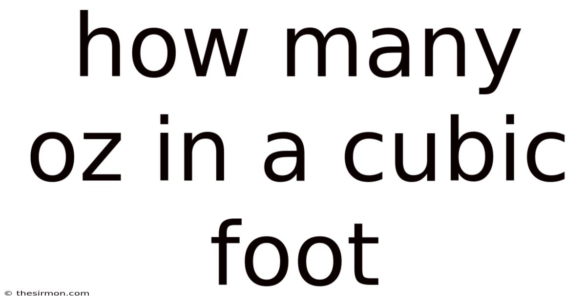 The question of how many oz in a cubic foot usually refers to fluid ounces rather than weight ounces. On the flip side, this distinction matters because fluid ounces measure volume, while standard ounces measure mass. Confusing the two can lead to significant errors, especially when working with dense or lightweight liquids Worth keeping that in mind..
