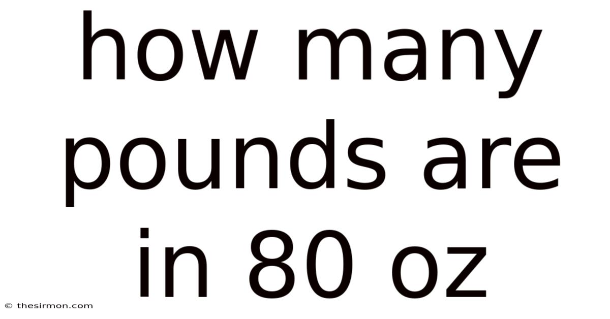 Putting it simply, there are exactly 5 pounds in 80 ounces. This conversion is simple: divide the number of ounces by 16 to get the equivalent weight in pounds. The relationship between these two units is consistent and reliable, making it easy to perform quick calculations in your head or double-check with a calculator Small thing, real impact..