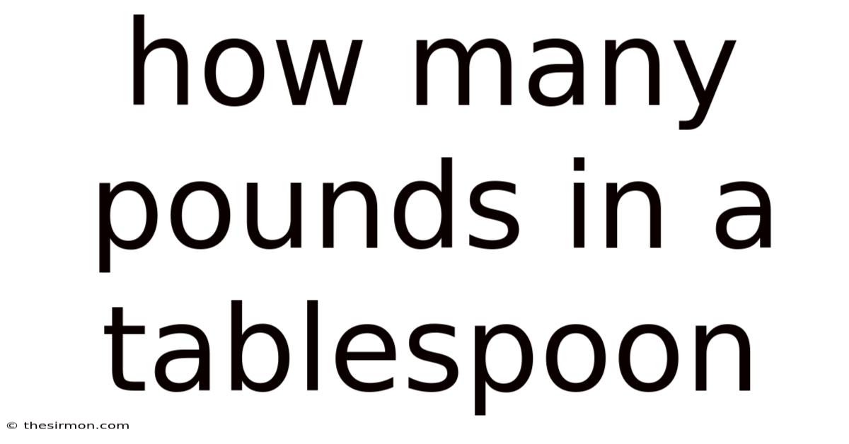 In a nutshell, there is no fixed answer to how many pounds in a tablespoon. The weight depends entirely on the density of the substance you are measuring. Because of that, while a tablespoon of water weighs approximately 0. 0022 pounds, a tablespoon of honey can weigh nearly twice as much, and a tablespoon of flour will weigh significantly less Less friction, more output..