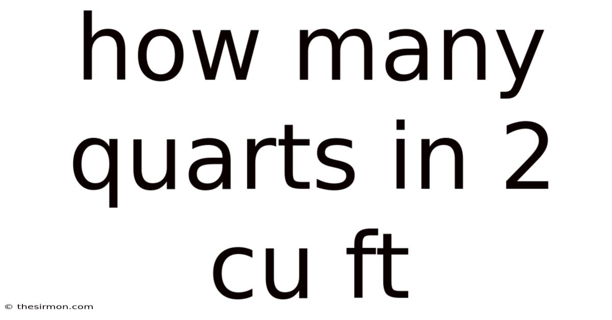 Understanding volume conversions is a fundamental skill with practical applications in gardening, cooking, construction, and shipping. On top of that, one common point of confusion is translating between cubic feet, a unit for measuring large three-dimensional spaces, and quarts, a unit for measuring smaller liquid or dry volumes. 844 US quarts**. Even so, to truly master this conversion and apply it confidently, it’s essential to understand the systems behind these units, the precise calculation, and the contexts where this knowledge is critical. The direct answer to the central question is that **2 cubic feet is equal to approximately 59.This guide will break down every aspect of converting 2 cubic feet to quarts, ensuring you can perform this calculation accurately for any project The details matter here..