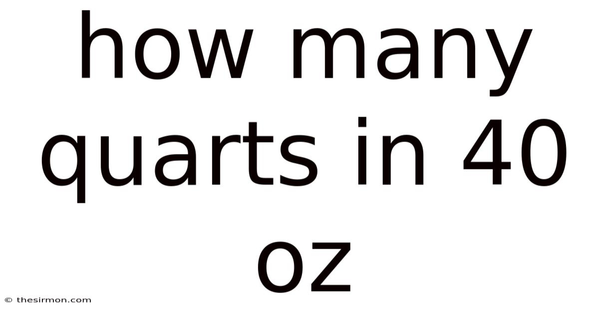 When you’re cooking, baking, or following a DIY project, the question “how many quarts in 40 oz?Here's the thing — ” pops up more often than you might think. Think about it: whether you’re scaling a recipe, measuring ingredients for a home‑brew, or simply trying to understand a label on a bottle, knowing how to convert ounces to quarts is a fundamental kitchen skill. In this article we’ll break down the conversion step‑by‑step, explore the science behind volume measurements, provide handy shortcuts, and answer the most common questions so you’ll never be stuck wondering about fluid units again Not complicated — just consistent. Less friction, more output..