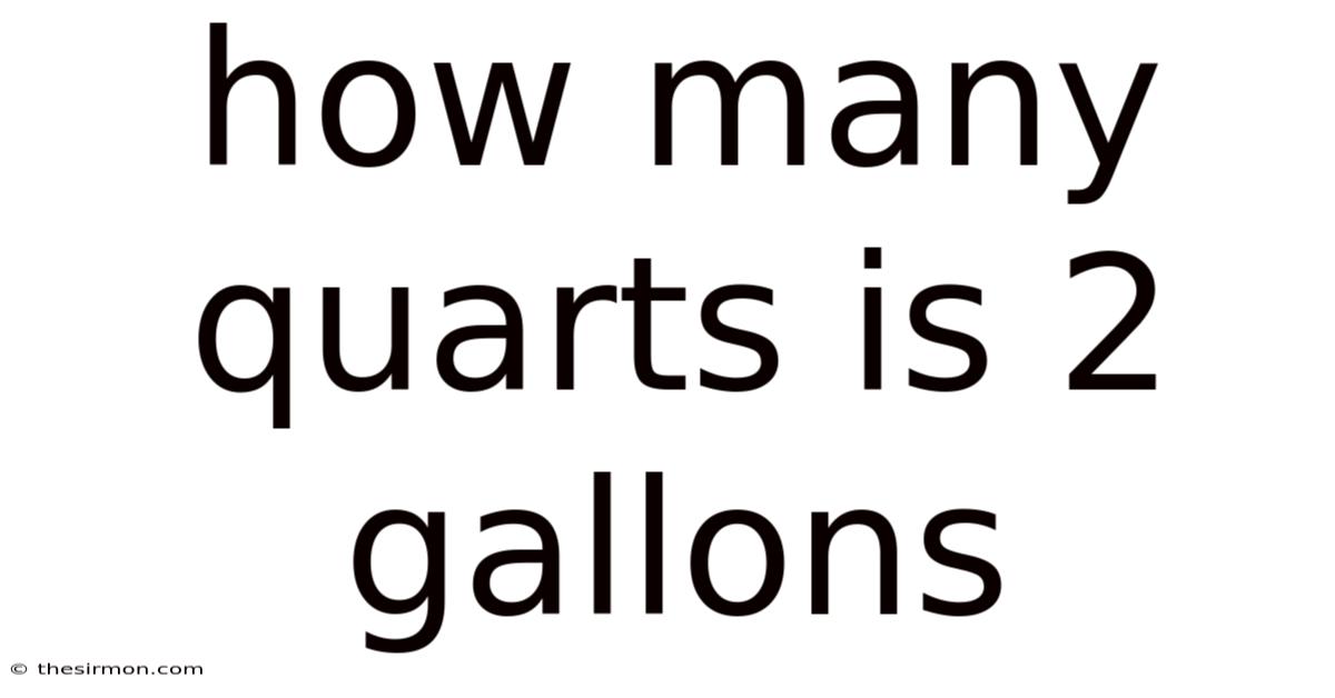 - Is 2 gallons always 8 quarts? Only within the same measurement system. 2 US liquid gallons = 8 US liquid quarts, 2 imperial gallons = 8 imperial quarts, but 2 imperial gallons equal ~9.6 US quarts. Always confirm the gallon type before converting.