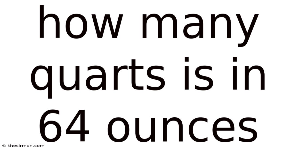 Continuing fromthe established foundation, understanding this specific conversion offers practical advantages beyond mere calculation. Consider this: for instance, when scaling a recipe, knowing that 64 ounces equals 2 quarts allows you to easily adjust quantities. If a soup recipe requires 2 quarts of broth, you can confidently measure out 64 ounces from a standard quart container. Conversely, if you find a large stockpot labeled as holding 64 ounces, you immediately recognize its capacity as 2 quarts, simplifying inventory checks or storage planning Most people skip this — try not to. That's the whole idea..