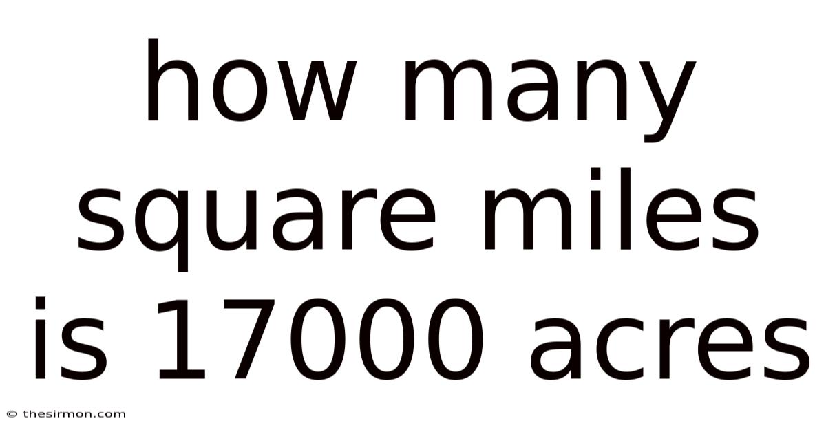 Introduction Land area is frequently measured in acres, particularly in the United States and other countries using the imperial system. That said, when dealing with very large areas, such as farms, forests, or urban developments, expressing the size in square miles becomes more practical. Understanding how to convert between these units is essential for accurate planning, reporting, and comparison. This article explains the precise conversion of 17,000 acres into square miles using the standard conversion factor. We'll break down the calculation, explore the underlying principles, and discuss why this conversion matters.