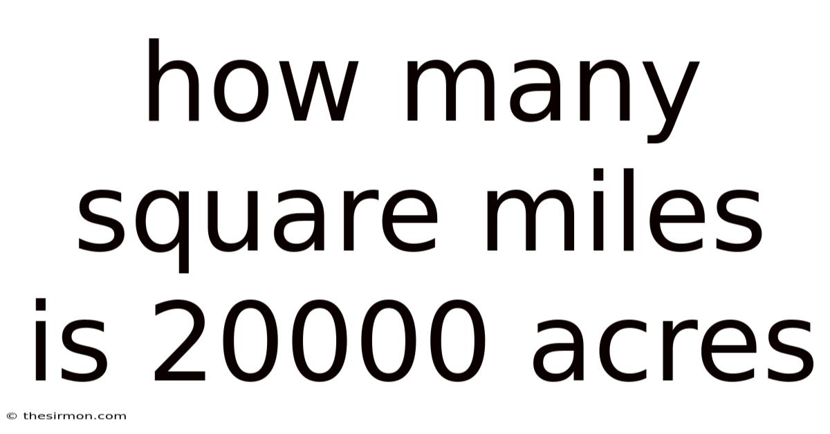 When dealing with land measurements, understanding the relationship between acres and square miles is crucial for accurate planning, real estate, or agricultural purposes. On the flip side, the question “how many square miles is 20000 acres” often arises in contexts where large-scale land areas need to be converted for practical use. Practically speaking, this conversion is not just a mathematical exercise but a fundamental concept that helps clarify the scale of land parcels. Whether you’re managing a farm, analyzing property boundaries, or simply curious about land sizes, knowing how to convert 20,000 acres to square miles provides a clearer picture of the actual area involved Surprisingly effective..