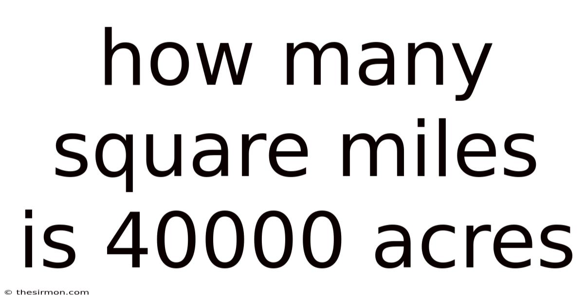 Understanding land measurement conversions is essential for professionals in real estate, agriculture, conservation, and urban planning, as well as for anyone managing or purchasing property. This conversion is not just a numerical exercise; it bridges two fundamental units of area used across different systems and contexts, providing a crucial perspective on large-scale land parcels. But 5 square miles**. A common and significant query in this domain is: **how many square miles is 40,000 acres?That's why ** The direct answer is that 40,000 acres equates to **62. Grasping this relationship helps in visualizing vast tracts of land, comparing regional sizes, and making informed decisions in land-related fields But it adds up..