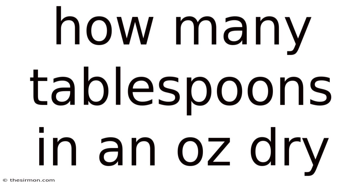 Understanding the relationship between tablespoons and ounces in dry ingredients is essential for anyone who values precision in cooking, baking, or any other culinary endeavor. Whether you're a beginner or a seasoned chef, knowing how to convert measurements accurately can save you time and prevent frustrating mistakes. On the flip side, in this article, we will explore the conversion process in detail, ensuring you have a clear and practical understanding of how many tablespoons are contained within an ounce of dry ingredients. By the end of this guide, you’ll be equipped with the knowledge to handle measurements with confidence And that's really what it comes down to..