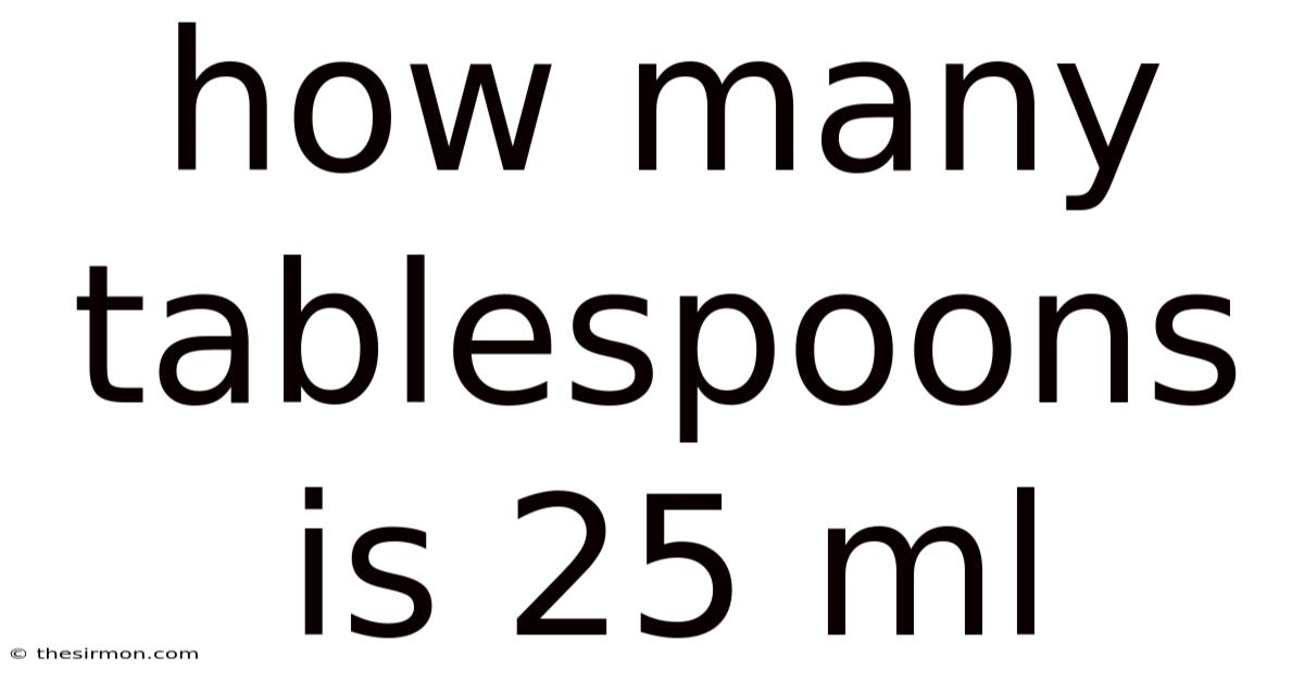 Put another way, 25 ml is equal to 1 tablespoon plus 2/3 of another tablespoon. For practical purposes in cooking, this is often rounded to 1 and 2/3 tablespoons or 1 tablespoon and 2 teaspoons (since 1 tablespoon equals 3 teaspoons).