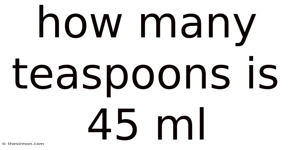 When you’re following a recipe, mixing a homemade remedy, or simply trying to measure a liquid for a science experiment, you’ll often encounter the need to convert between milliliters (mL) and teaspoons. A common question that pops up is: “How many teaspoons is 45 mL?” Understanding this conversion not only saves time but also ensures accuracy in cooking, baking, and dosing. This article breaks down the math, explains why the conversion matters, and offers practical tips for everyday use Worth keeping that in mind..